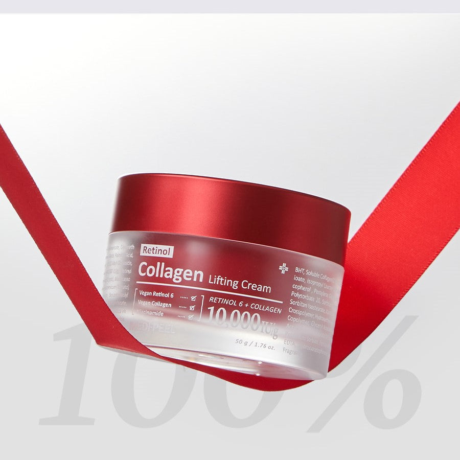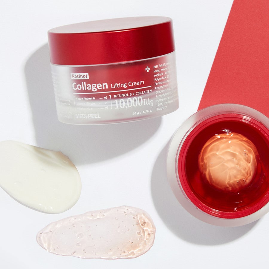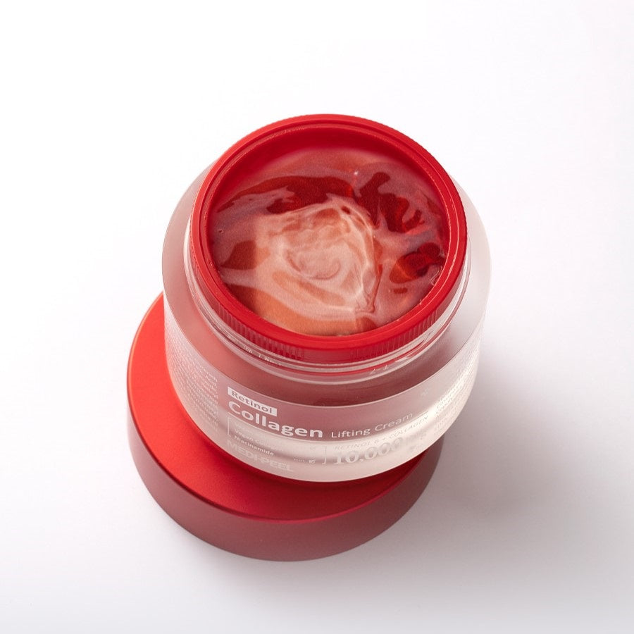 Dvigubas kremas su retinoliu Medi-Peel Retinol Collagen Lifting Cream suteikia galingą jauninamąjį poveikį, lygina raukšles, sumažina porų matomumą ir pakelia, didindamas elastingumą ir stiprumą.